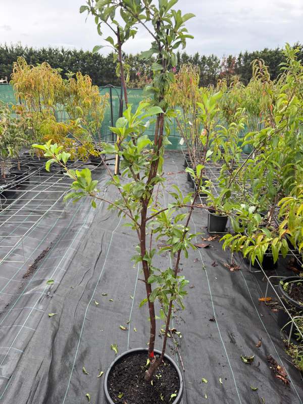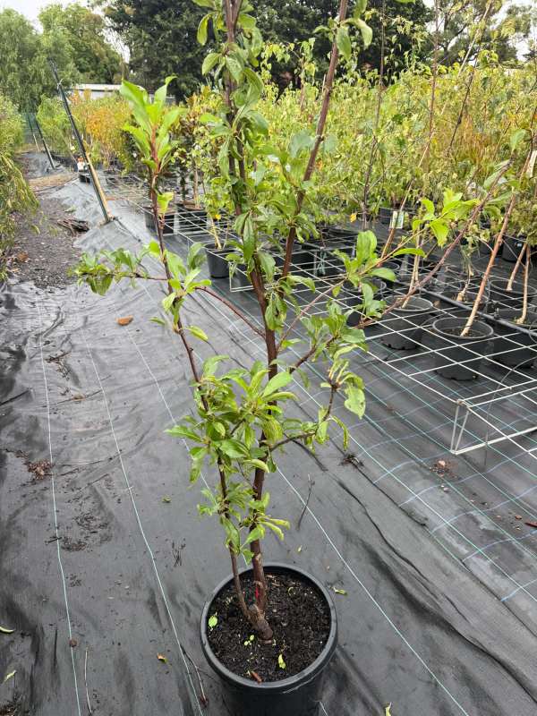 2-way plum Mariposa + Flavour Supreme is a grafted fruit tree that combines two popular plum varieties on a single plant. This type of tree is ideal for home gardens as it produces two different fruits while taking up the space of only one tree. It also helps improve pollination and fruit production.