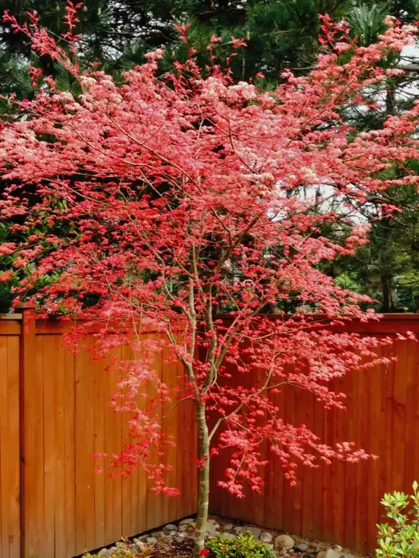 With its compact size and intense spring colour, Shindeshojo Maple is a favourite for collectors and landscape designers seeking an elegant focal plant.
