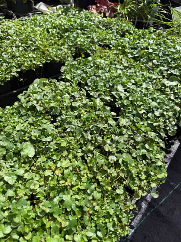 ‘Emerald Falls’ produces long, spreading stems covered with small, rounded, bright emerald-green leaves that create a dense, carpet-like appearance. The foliage forms graceful cascades when grown in hanging baskets or containers, while in garden beds it spreads across the soil as a thick ground cover. Its vibrant green color provides an attractive contrast to flowering plants and other ornamental foliage.
