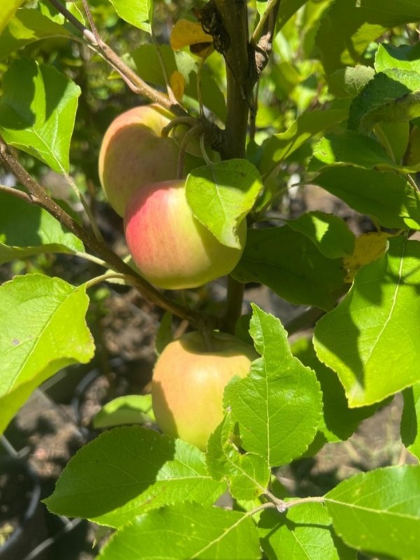 The Pinkabelle Apple tree develops a neat, upright canopy with fresh green foliage. In spring, it produces clusters of delicate white to pale pink blossoms that create a beautiful ornamental display and attract pollinators. These flowers are followed by medium-sized apples with smooth skin and a pinkish-red blush over a yellow background.