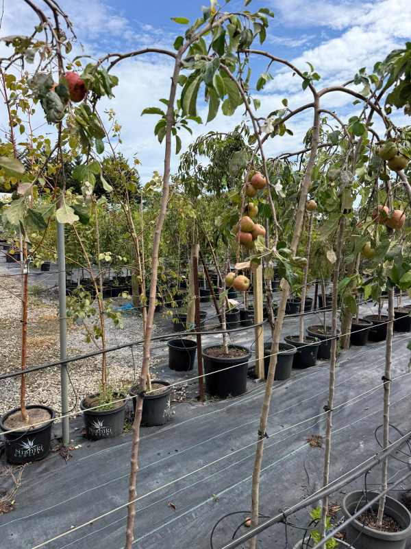Wandin Pride Weeping Apple is an ornamental and fruiting apple tree known for its elegant weeping habit and cascading branches. It belongs to Malus domestica, a deciduous species widely cultivated for both decorative and edible purposes.